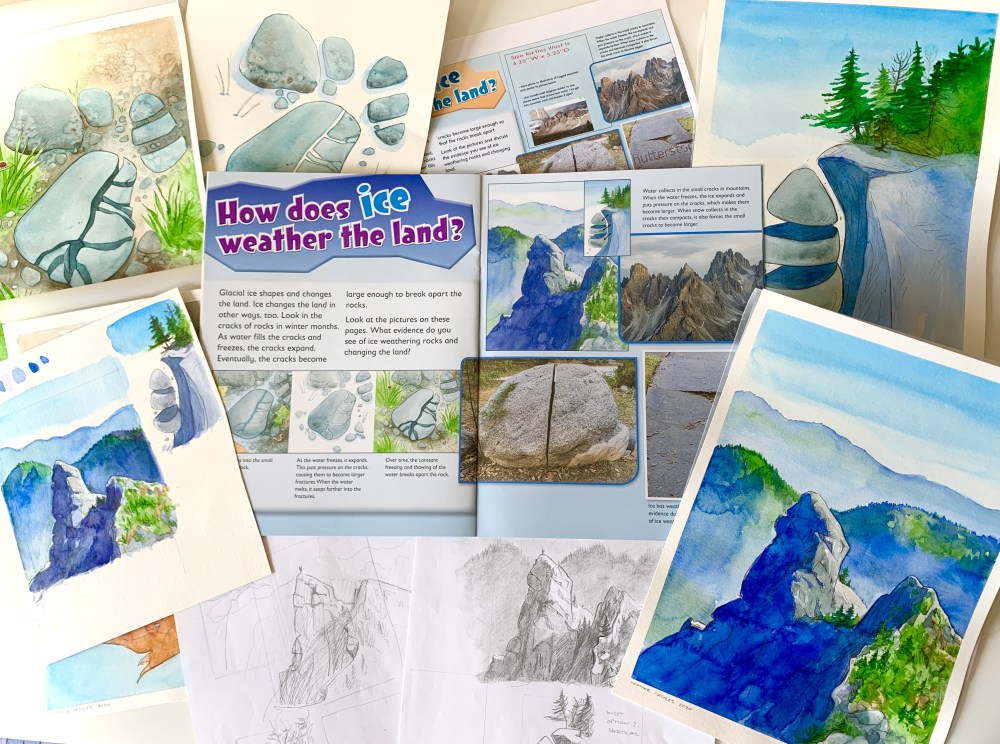 Another magazine has come back from print, and was fun to see how Scholastic Education used my illustrations in their How Wind, Water and Ice Change the Land magazine. It is part of the BC Let’s Do Science materials for kids.