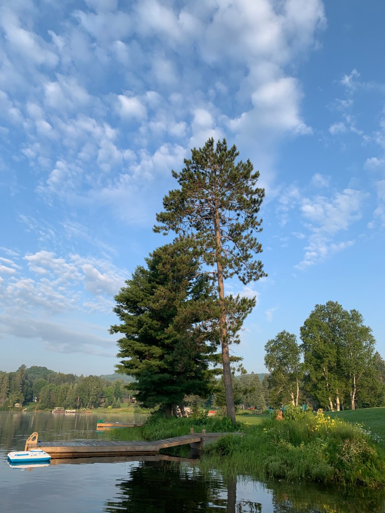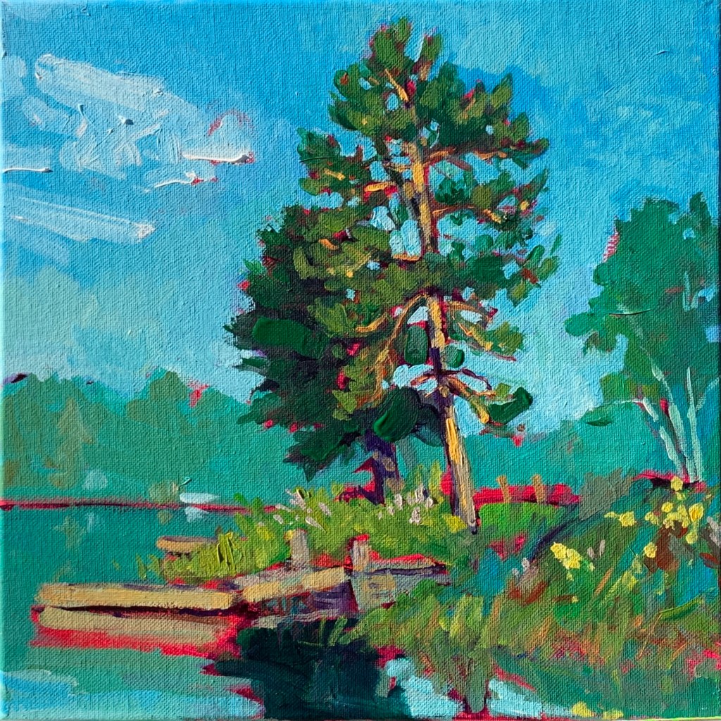 Something about being up North makes me wake up early! Which is great for painting as the light is gorgeous. I had an hour to myself before everyone was up so spent it sitting on the dock painting a study of trees (12×12 acrylic on canvas) at Scarlette Point where we stayed… formerly Poplar Point where my grandma grew up.
