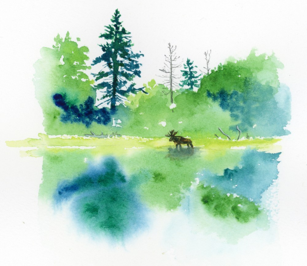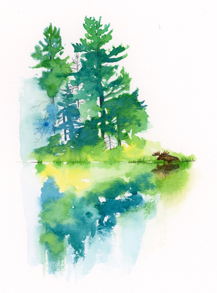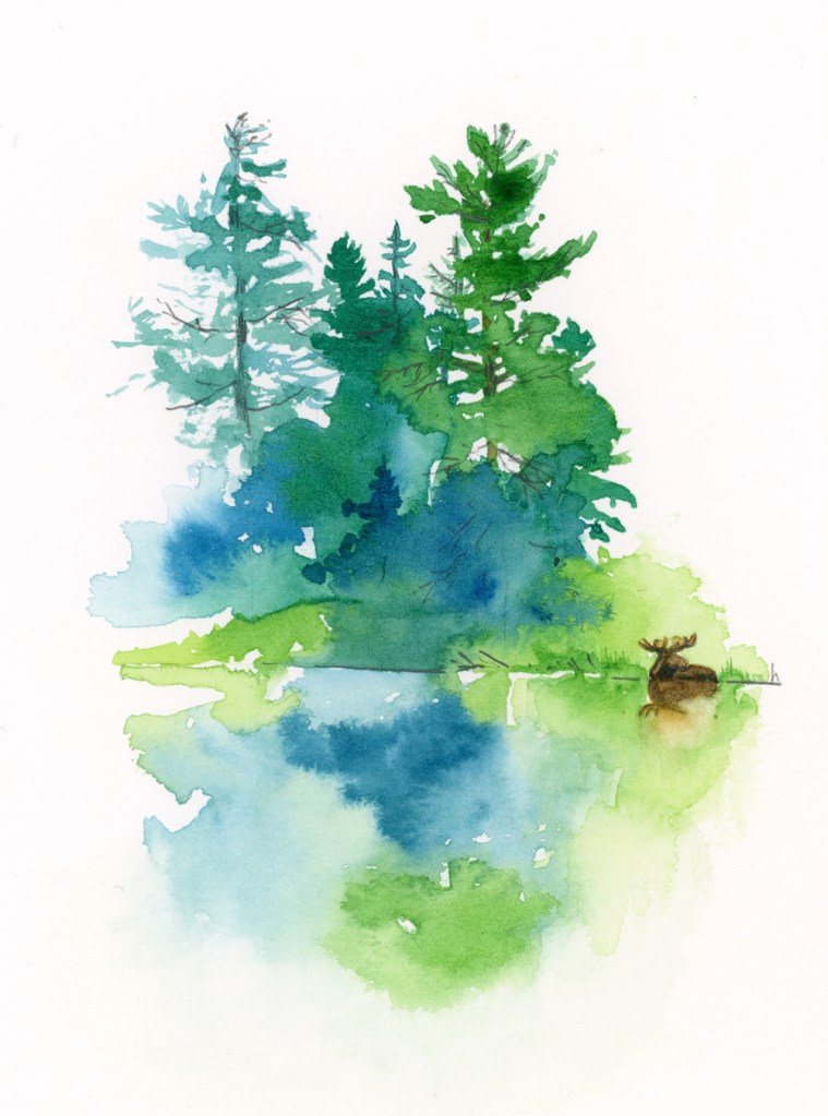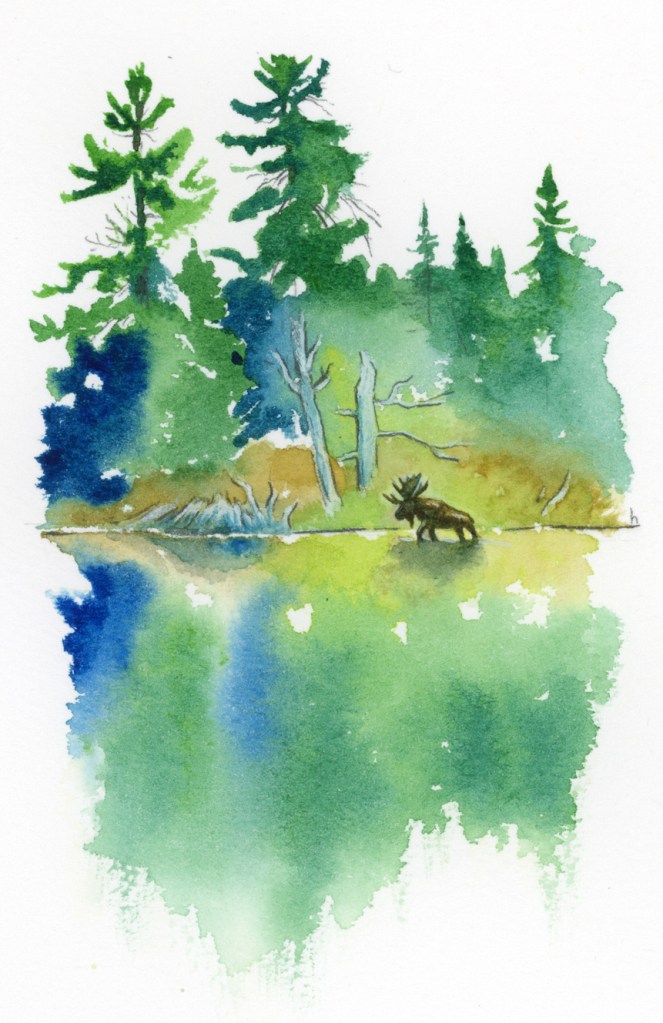 For the second time this summer, I am releasing a collection of twelve petite watercolours inspired by Algonquin Park. This set is more detailed, and I’ve enjoyed spending some time studying moose and trees… all actual trees in The Park. I will be delivering them to Nostalgia Antiques this Saturday (as well as four special orders)… they won’t last long, the first set sold out via their Facebook shop before store opening! I will be there doing a watercolour demo this Saturday Aug 14th, so be sure to pop by if you are on your way in or out of the park and say hi!