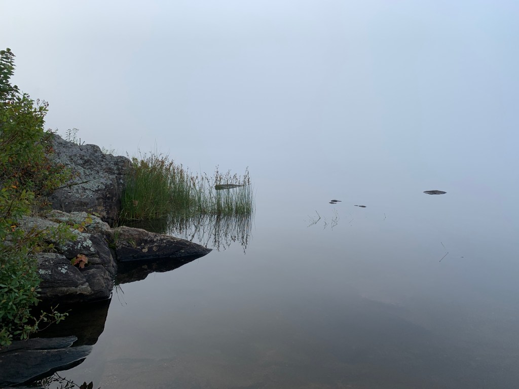 So this was the view from our cabin at 7:30am… fog! Day 4 in Rain Lake, Algonquin Park. I was meant to paddle out with my daughters to the landing in time to meet friends… but decided to delay until the fog lifted a little instead of paddling blind.