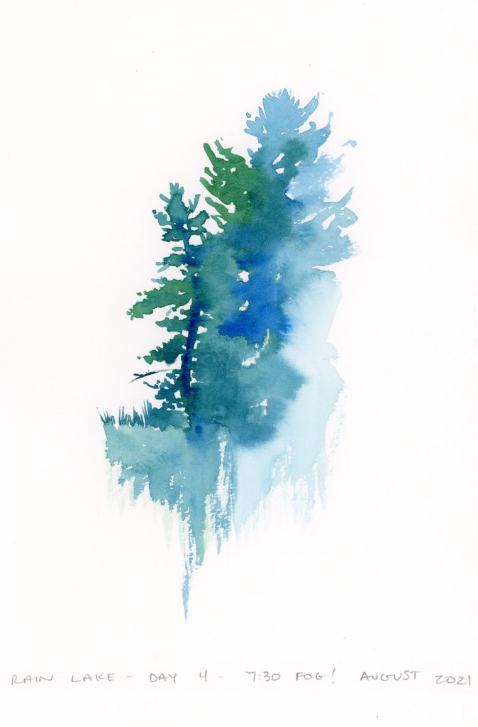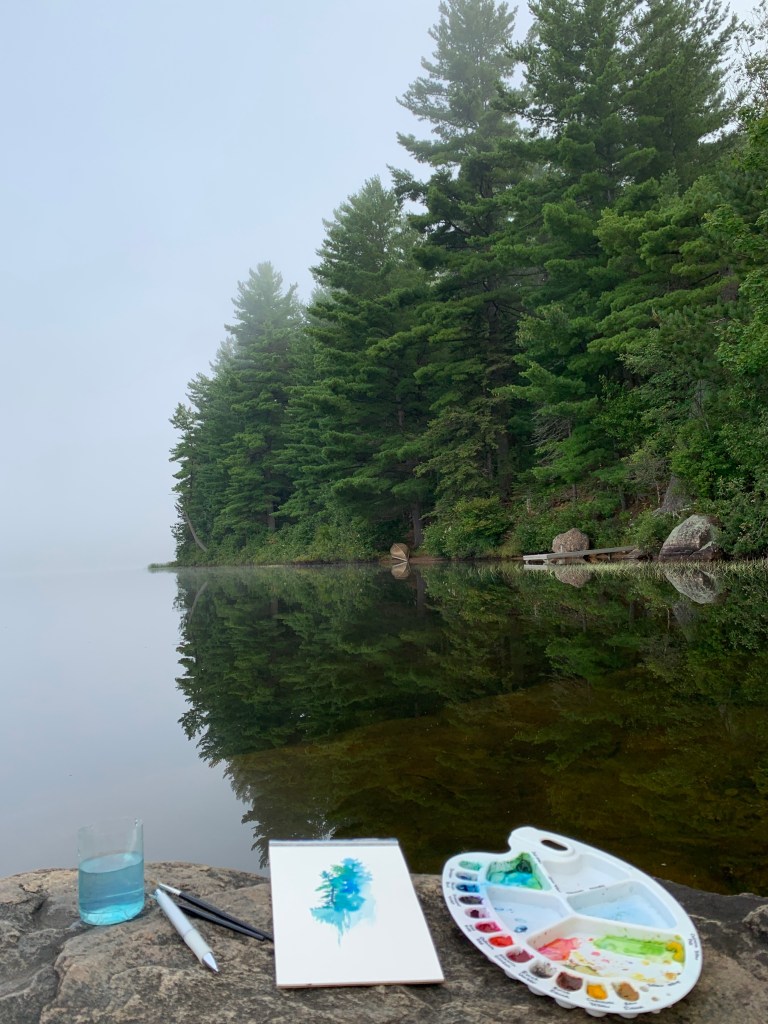 I could see about 30m out, and it was like the trees were cut out and against a white background… the photos don’t capture how bright it was. Was fun squeezing in a couple paintings before we headed out on our 4km paddle towards the landing.