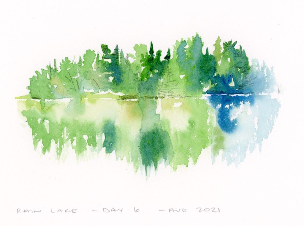 Rain Lake : Day 6 watercolour Posted by Heather on August 28, 2021August 25, 2021 Before I started working on the acrylic painting affectionately called “Before Breakie,” I did a little watercolour study of the same scene. Rain Lake Cabin Day 6 – still across the lake – 5×7 watercolor – AVAILABLE still across the lake available on etsy The sun was coming up to my left through the trees Share this:TweetLike Loading...