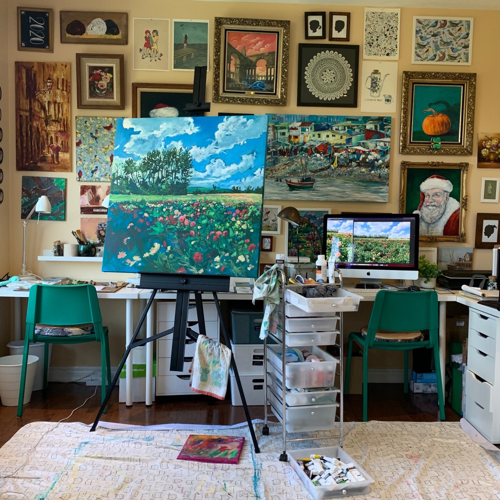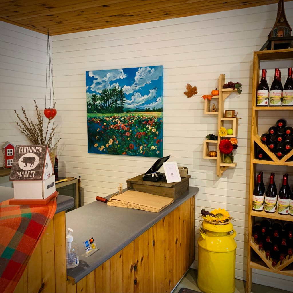 Pop by Andrews Farm Market & Winery in Milton, to see the painting in person… be sure to explore the farm, the dahlias are still blooming!