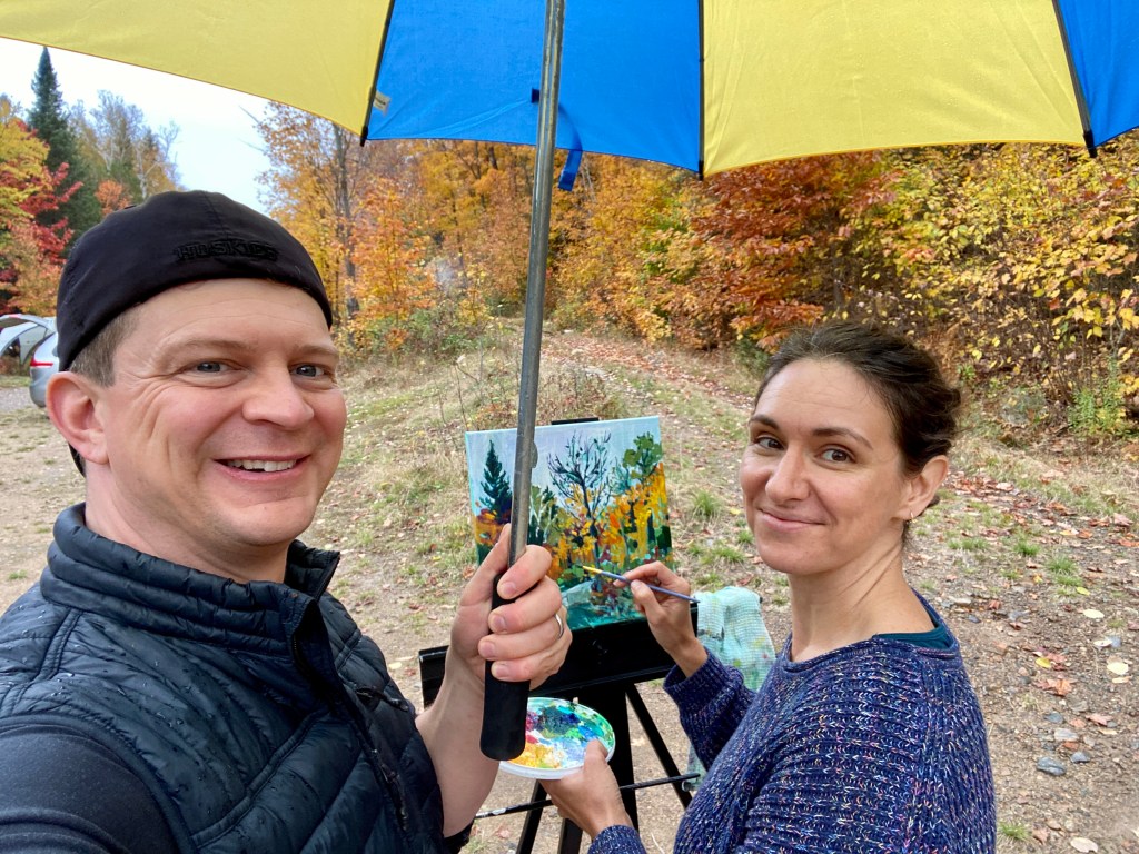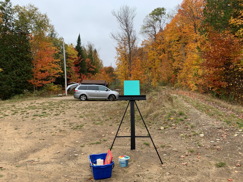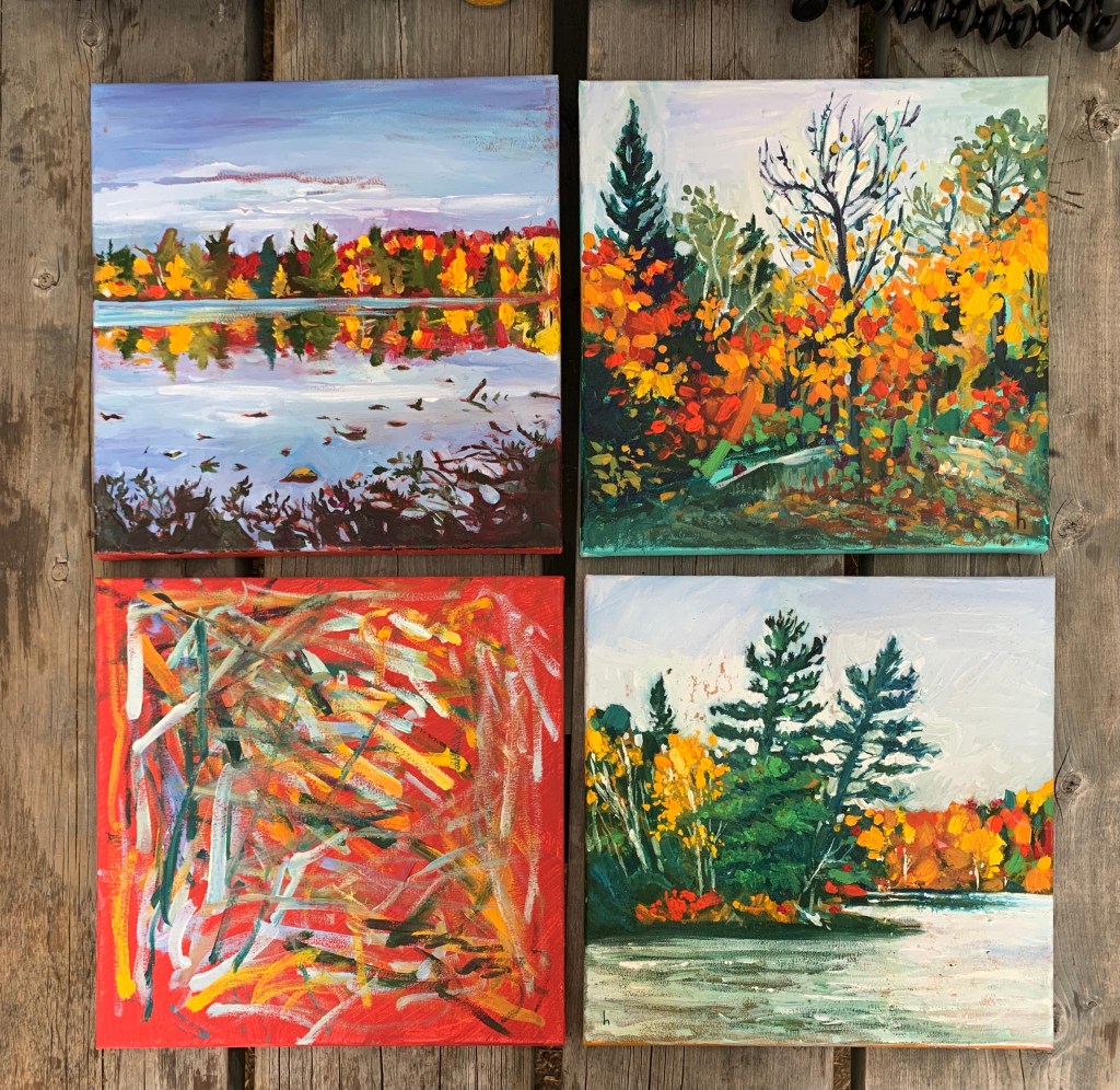 This is a little painting I did in the early afternoon en plein air at Groom Lake, Kearney, ON… partway through it started to rain, and my husband held an umbrella up for me until I finished working. Really pleased with this one, and it was a nice memory working on it together… though it’s not easy to paint with someone literally looking over your shoulder, lol! This is the painting I was working on while the rain was washing away another painting!
