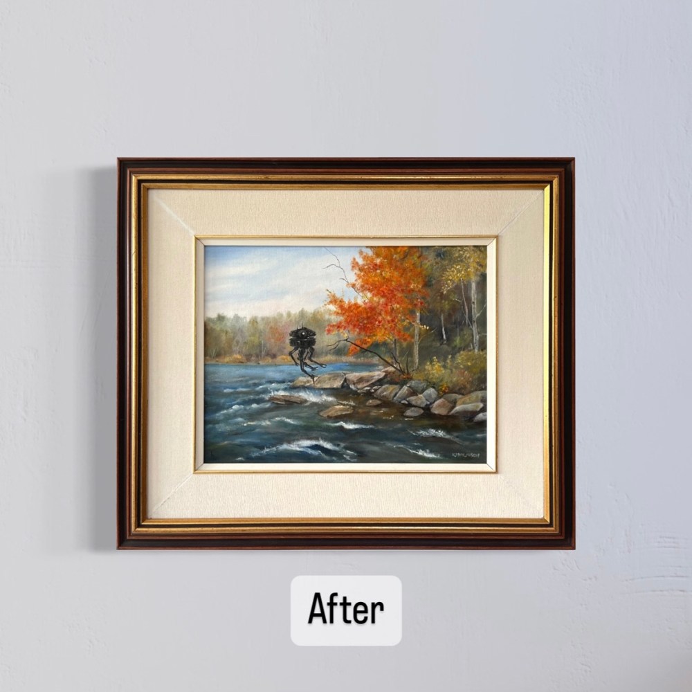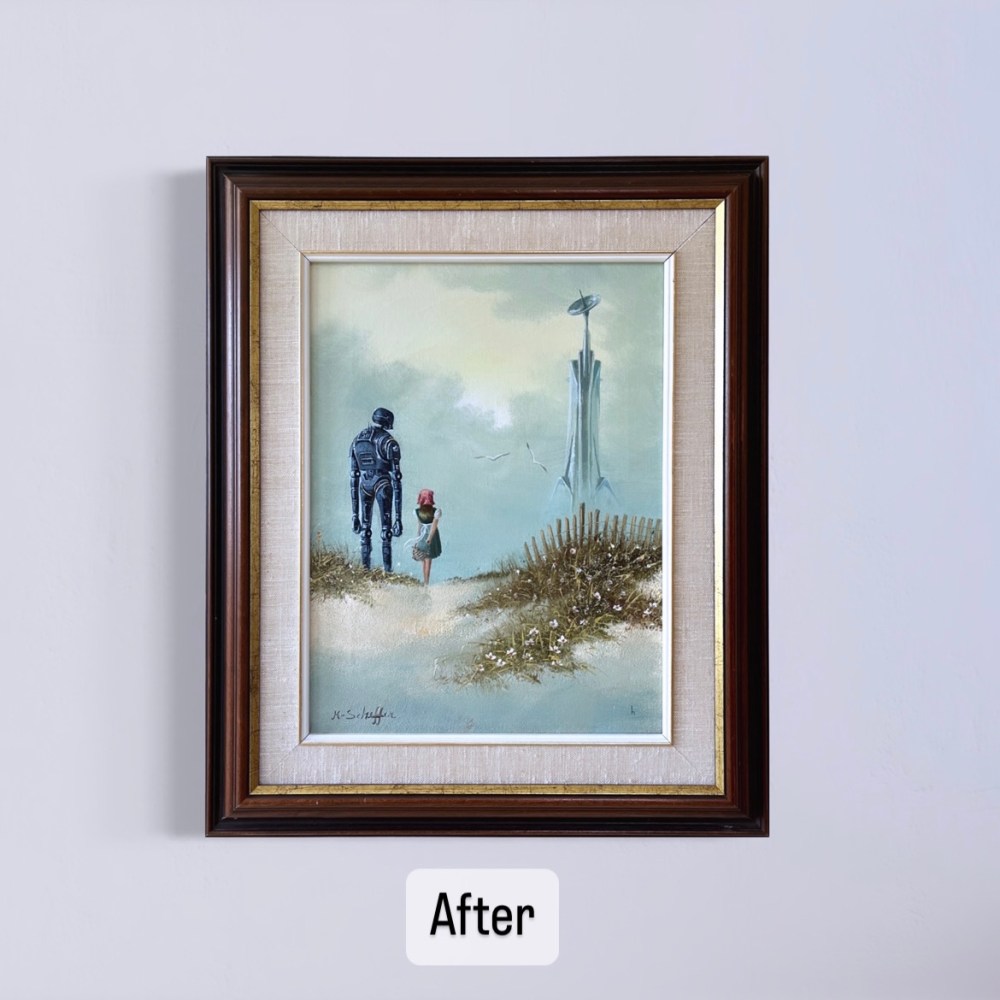 Original vintage painting by Geza (Gordon) Marich (1913-1985) It was a delight painting BB8 in the loose painterly style of Marich… the piece itself was lovely as it was, but this sort of style isn’t as popular anymore and often doesn’t fit in with modern decor. By introducing a new playful element, I hope to bridge that gap and encourage an appreciation of Marich’s work.