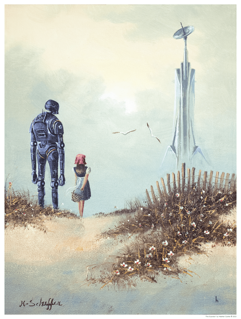 When I came across this vintage oil painting, I knew this little girl needed a guardian. K-2SO seemed like the perfect choice, being the perfect balance of sweet and sinister himself. So Cassian told him he had to! I love thinking of irritable K-2SO walking along the beach with this little girl, criticizing her choice in seashells, complaining about sand in his gears… and wondering what they are thinking as they look on the satellite tower on Scarif.