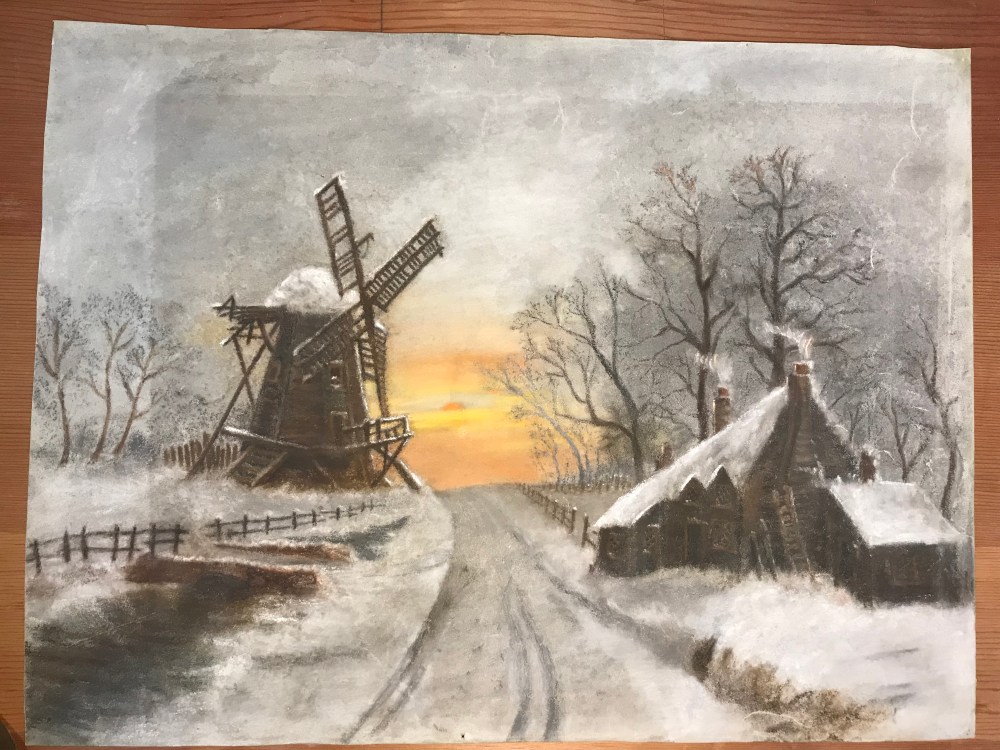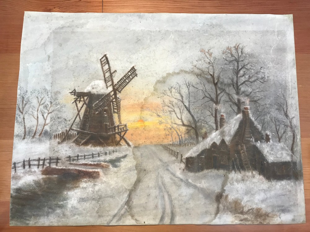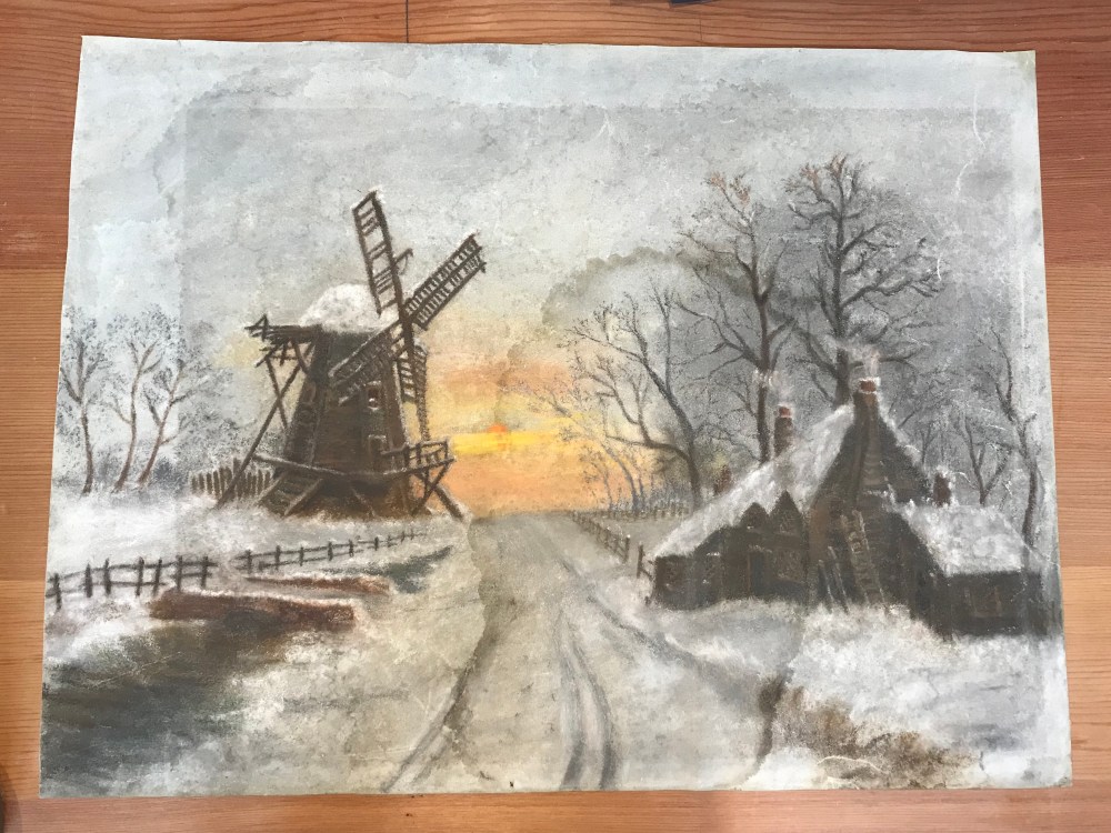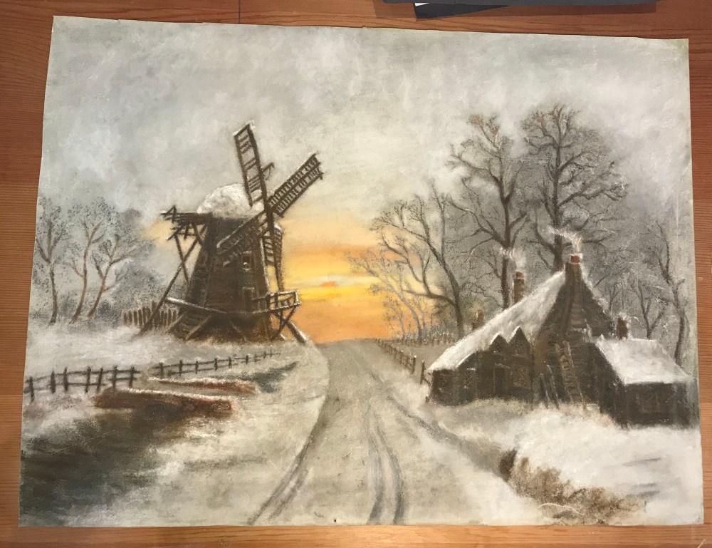 Below is an example of art repair which I recently completed of a vintage chalk pastel drawing with extensive mold and water damage.
